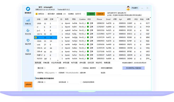 批量登陆账户,采集粉丝,修改资料,私信,提醒,评论,回关,发帖,群聊