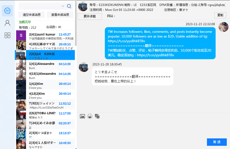 新模式:twitter独家一手,拉群强私信协议,单号当天400+,轻松百万私信,沉淀余粉充足